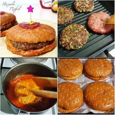 *Hamburger ekmeğinin alt kısmını sosa arkalı önlü batıralım araya köfteyi koyalım,sonra ekmeğin diğer tarafını soslayalım
