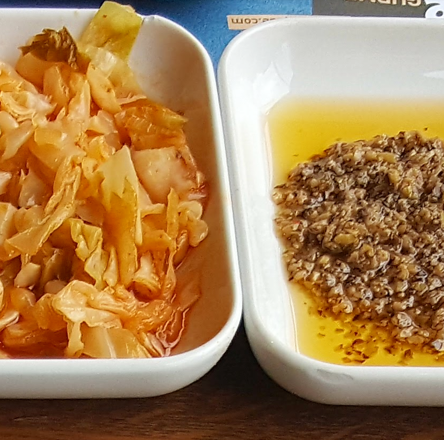 Yukarıdaki lahana turşusu ve zeytin ezmesi de çok lezzetli . 3 çeşit zeytinin çekilip fındıkla karıştırılması ile yapılıyor.